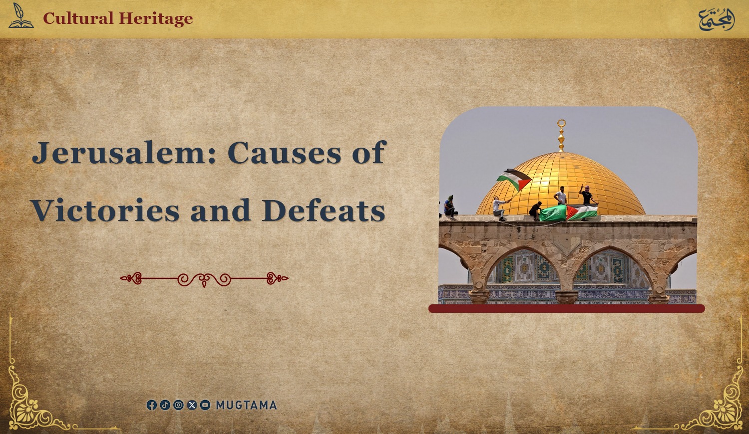 For a long time, Jerusalem remained under Islamic rule during the Ayyubid and later the Mamluk dynasties. The Mamluks, led by Qutuz, took a stand in defending the Levant and Egypt against the Mongol invasion, an event that history remembers with great pride. This victorious Mamluk leader was able to instill the spirit of fighting and jihad in the cause of God among Muslim soldiers. He marched with them from Egypt to the Levant to meet the Mongols at Ain Jalut, accompanied by his friend Sheikh Ibn Abd al-Salam, who guided and supported him. God granted them a resounding victory that restored dignity to Islam and honor to the Muslims.